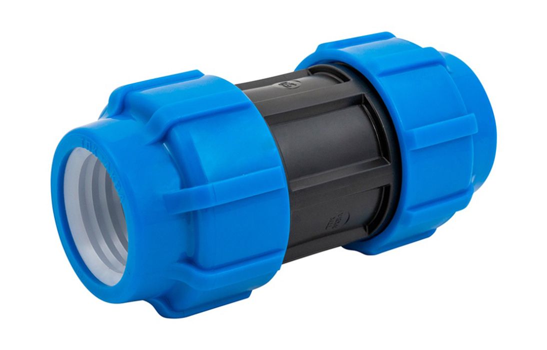 Для соединения двух полиэтиленовых труб используют цангу. Она представляет собой короткий металлический или полиэтиленовый отрезок с прорезанной на двух сторонах резьбой. Торцы цанги позволяют частично зафиксировать в них концы подсоединяемых труб. На трубы надевают упорные кольца, уплотнители и ограничители. Уплотнители не дают воде вырываться наружу и, в общем, существенно улучшают общую герметичность. Упорные кольца нужны для того чтобы все составляющие держались на месте, они же являются основным элементом, позволяющим использовать силу затяжки наружных гаек. Наружные гайки предназначены для стягивания фитинга воедино. Гайки закручивают на цанговую резьбу так, чтобы они своим корпусом зажимали упорные и уплотнительные кольца.