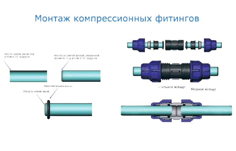 Монтаж компрессионных муфт возможен без специального инструмента.