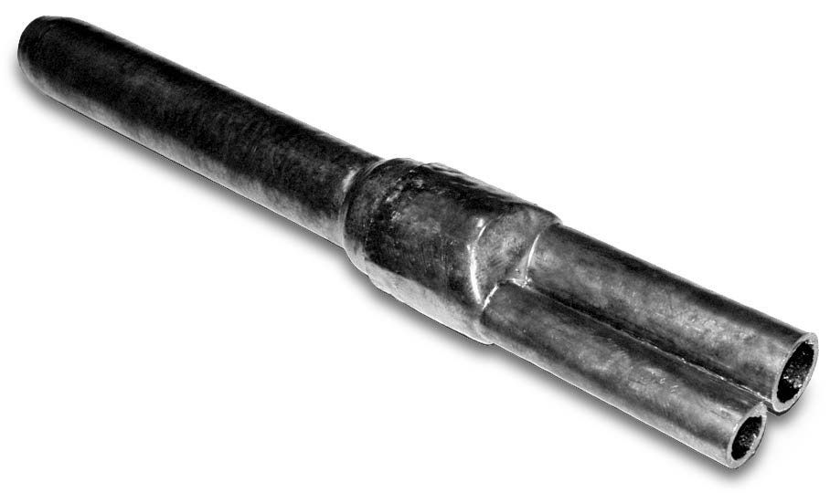 Муфта типа МСР представляет собой проходную свинцовую муфту. Муфта состоит из корпуса и оголовника. На корпусе имеется конус для ввода основного кабеля. На оголовнике муфты имеются патрубки для ввода ответвляющихся кабелей типа ТСВ.
