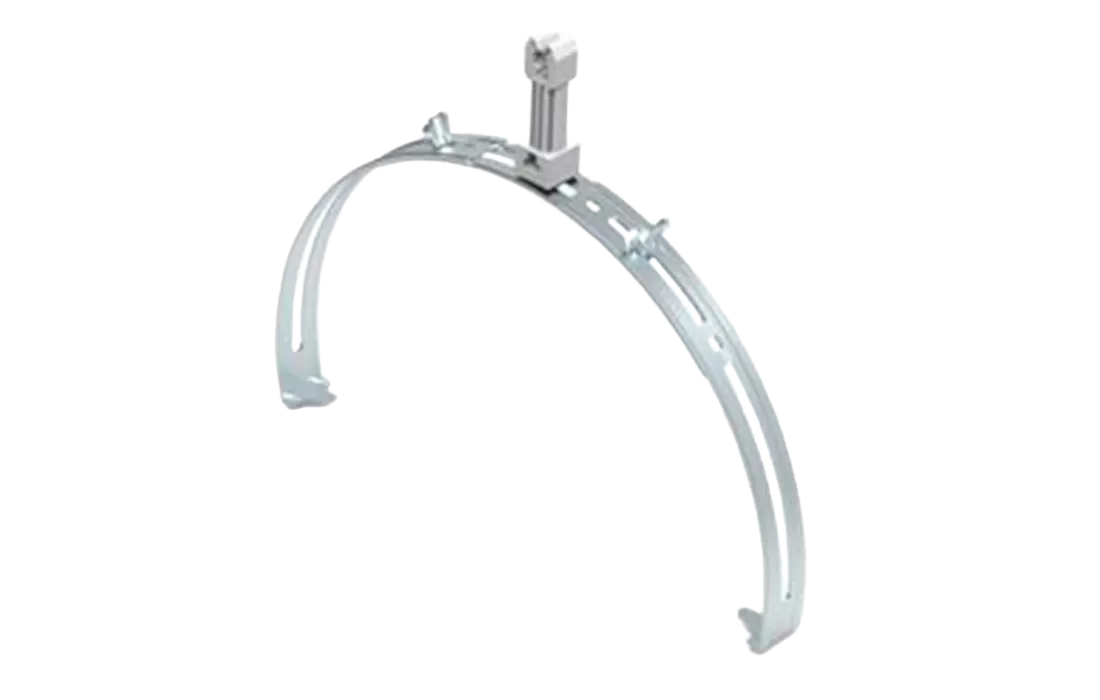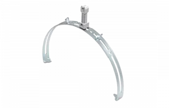 Регулируемый коньковый зажим с пластиковым держателем применяется для крепления молниеприемной сетки на круглом коньке кровли. Проводник фиксируется путем защелкивания. Диапазон зажима – 125-205 мм. Изготовлен из горячеоцинкованной стали.