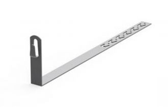 Прямой держатель под черепицу применяется для крепления молниеприемной сетки на шиферных и черепичных кровлях. Проводник фиксируется безвинтовым зажимом с помощью плоскогубцев. Длина – 330 мм, изготовлен из горячеоцинкованной стали.