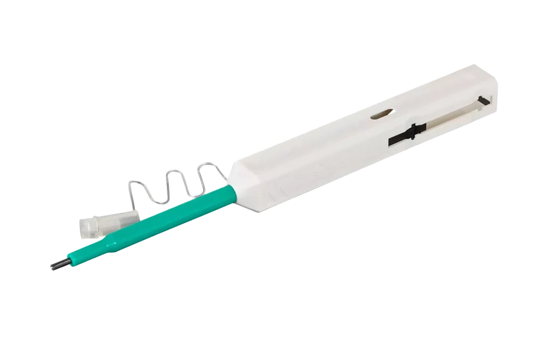 Очистка происходит при соприкосновении торца очистителя с торцом коннектора, сопровождаемом прокручиванием «жала» очистителя вокруг своей оси с последующей протяжкой чистящей нити. Длина чистящей нити позволяет осуществить ~ 800 чисток одним очистителем. Имеющийся в устройстве выдвижной механизм делает работу удобной, так же и при работе на кроссах высокой плотности.