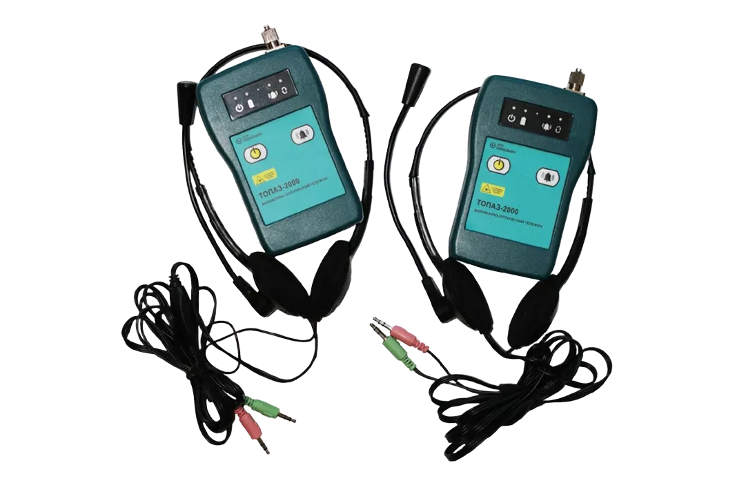 Комплект оптических телефонов «Топаз-2000», состоит из двух полу-комплектов «Топаз-2000-1» и «Топаз-2000-2», в каждый из которых входит модуль оптического телефона и телефонная гарнитура.