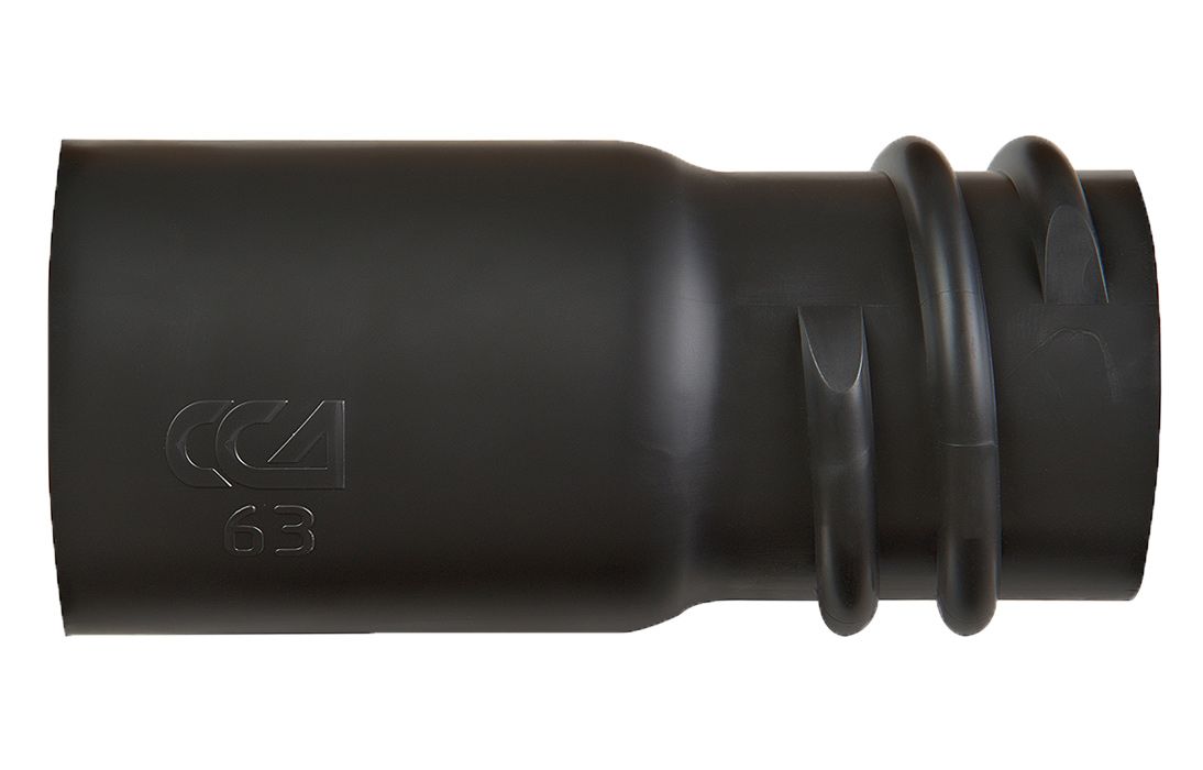 Предназначен для стыковки трубы полимерной жесткой гофрированной спиральной 63 мм (труба ССД-Пайп) с гладкими и гофрированными ПНД трубами наружным диаметром 63 мм, с применением соединительной компрессионной или надвижной канализационной муфт. Дополнительно возможно соединение с гладкими и гофрированными ПНД, а также металлическими трубами, наружные диаметры которых равны 25 мм, 32 мм, 40 мм, 50 мм, 75 мм, 90 мм и 110 мм, с применением переходных компрессионных муфт.