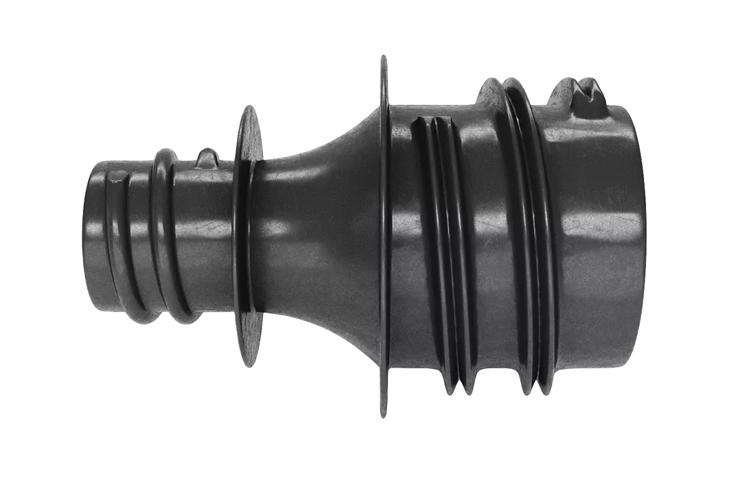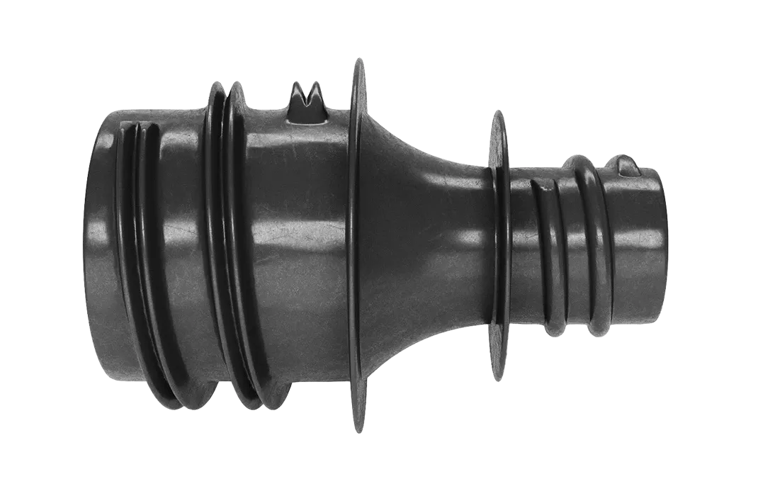 Предназначен для перехода с трубы полимерной жесткой гофрированной спиральной 110 мм (труба ССД-Пайп) на трубу ССД-Пайп 63 мм, и наоборот. Дополнительно переходник применяется совместно с колодцами ССД-Пайп, когда необходимо произвести переход с установленного в стенку колодца закладного 110 мм элемента на трубу 63 мм, и, наоборот.