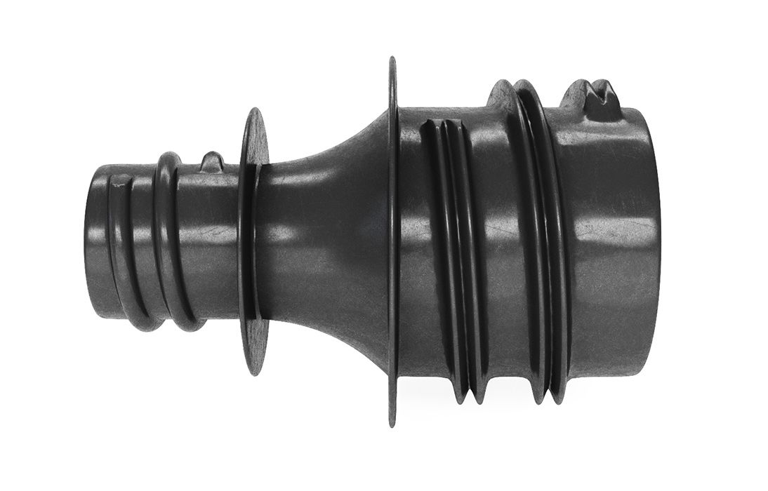 Предназначен для перехода с трубы полимерной жесткой гофрированной спиральной 110 мм (труба ССД-Пайп) на трубу ССД-Пайп 63 мм, и наоборот. Дополнительно переходник применяется совместно с колодцами ССД-Пайп, когда необходимо произвести переход с установленного в стенку колодца закладного 110 мм элемента на трубу 63 мм, и, наоборот.