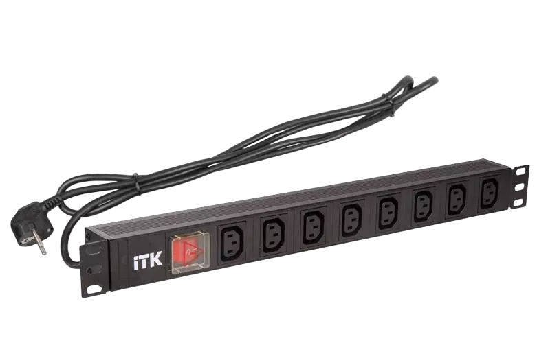 PH12-8C131 ITK PDU 8 розеток C13 с LED выкл,1U, шнур 2м вилка нем.ст