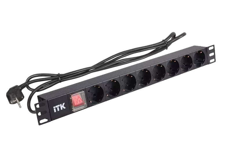 PH12-8D1-P ITK PDU 8 роз. нем.ст. с выкл 1U каб.2м вилка нем.ст ПВХ чер