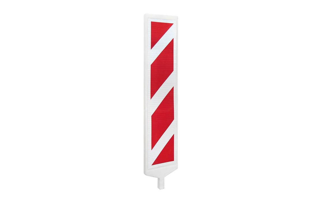 Дорожное ограждение оклеено с двух сторон красно-белой светоотражающей плёнкой. Направление полос соответствует знаку 8.22.2 (объезд препятствия слева). Устанавливается в подставку (приобретается дополнительно).