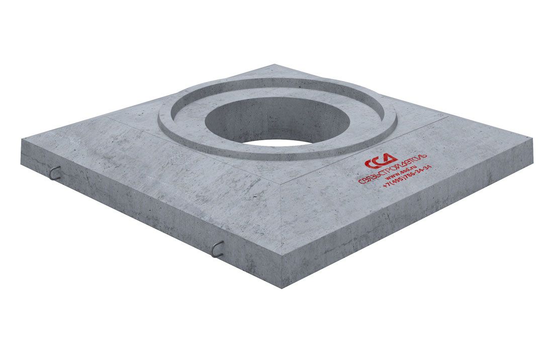 Плита имеет квадратную форму усеченной пирамиды, в центре которой расположено круглое отверстие диаметром 600 мм для формирования горловины с люком. Плита рассчитана на нормативную нагрузку «НК-80», то есть может размещаться под проезжей частью.