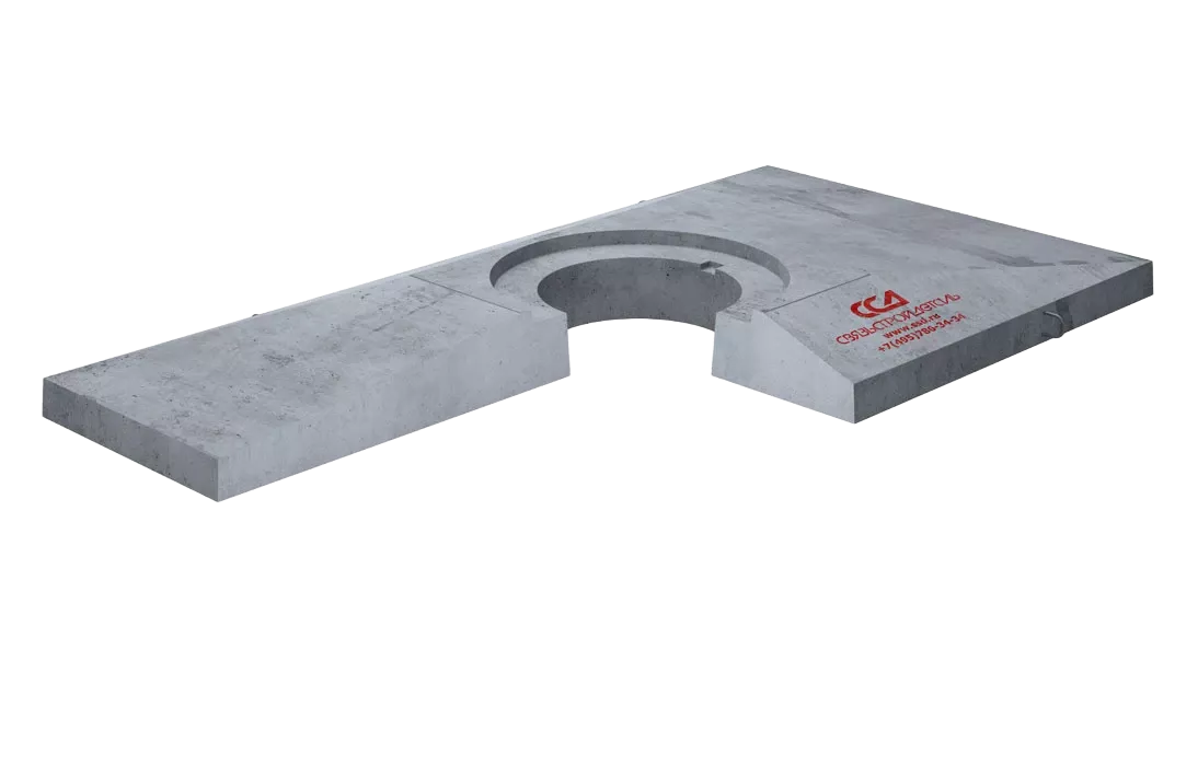 Плита предназначена для равномерного распределения нагрузки и применяется на колодцах типоразмера ККСр-4; ККСр-5. Приложенная (точечная) нагрузка действующая на зону установки колодца равномерно перераспределяется по подошве разгрузочной плиты. Правильно рассчитанная площадь плиты, толщины, класса бетона, армирования обеспечивает надёжную работу при расчётных условиях монтажа и эксплуатации конструкции.