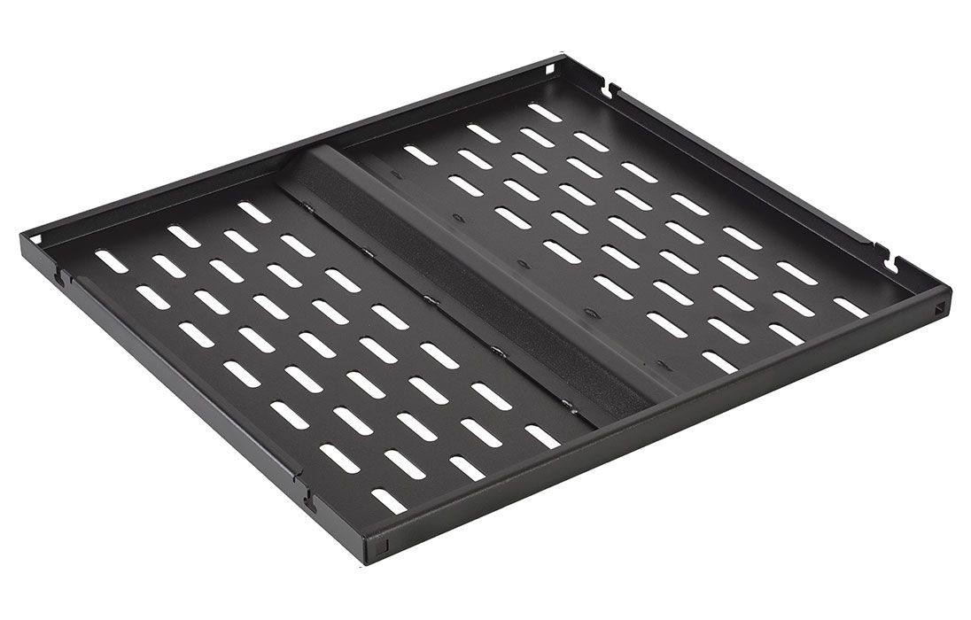 Полка стационарная предназначена для размещения нестандартного оборудования. Имеет четыре точки фиксации к вертикальным направляющим шкафов телекоммуникационных, климатических и открытых стоек. Для охлаждения оборудования полка имеет перфорацию.
