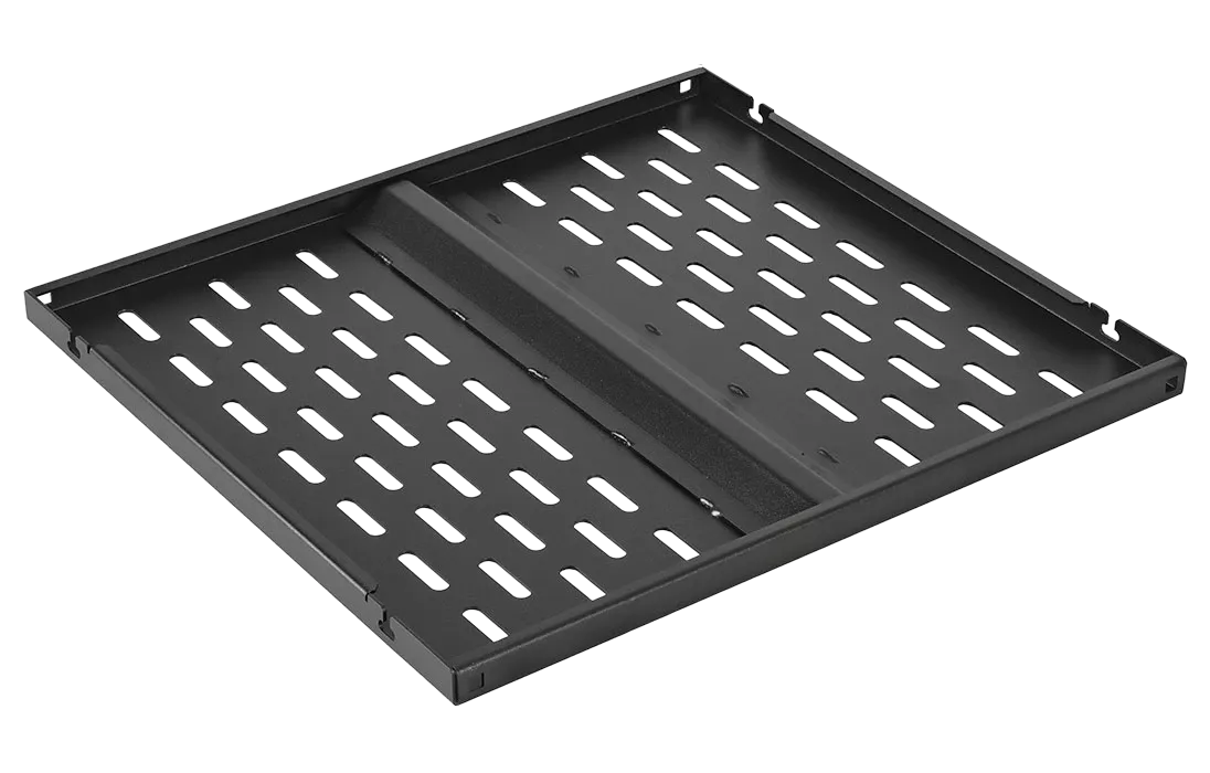 Полка стационарная предназначена для размещения нестандартного оборудования. Имеет четыре точки фиксации к вертикальным направляющим шкафов телекоммуникационных, климатических и открытых стоек. Для охлаждения оборудования полка имеет перфорацию.