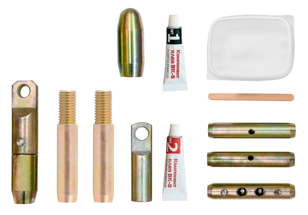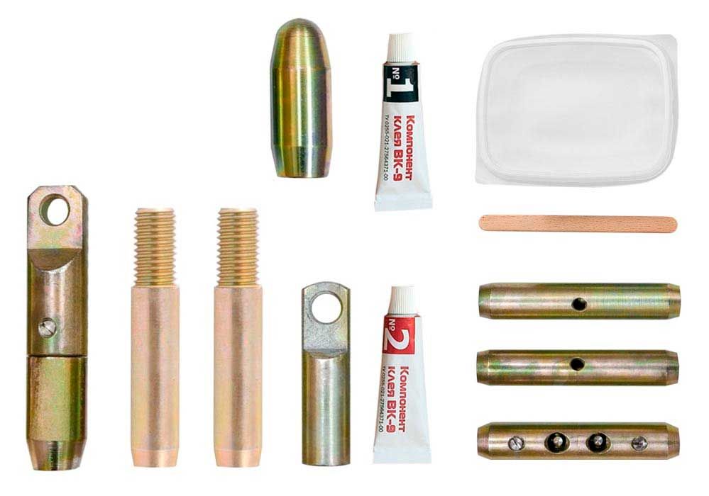 Для замены концевых деталей прутка, утраченных или повреждённых в процессе эксплуатации УЗК, предназначены детали ремонтного комплекта №1: наконечники, коуш, лидер-насадка и гайки.