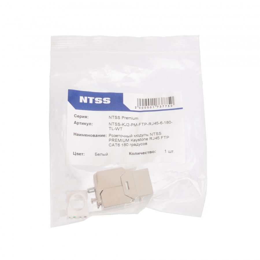 Розеточный модуль NTSS PREMIUM Keystone RJ45 FTP CAT6 180 градусов безинструментальный белый ver2