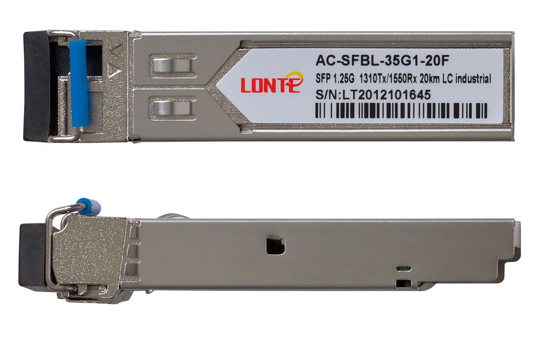 Одноволоконный оптический модуль с форм-фактором SFP для 1G Ethernet, соответствует стандарту 1000Base-BX. Предназначен для работы в одномодовом оптическом волокне (Single-mode fiber, SMF), максимальная дальность 20 км, LC коннектор, рабочая длина волны Tx/Rx: 1310/1550 нм.