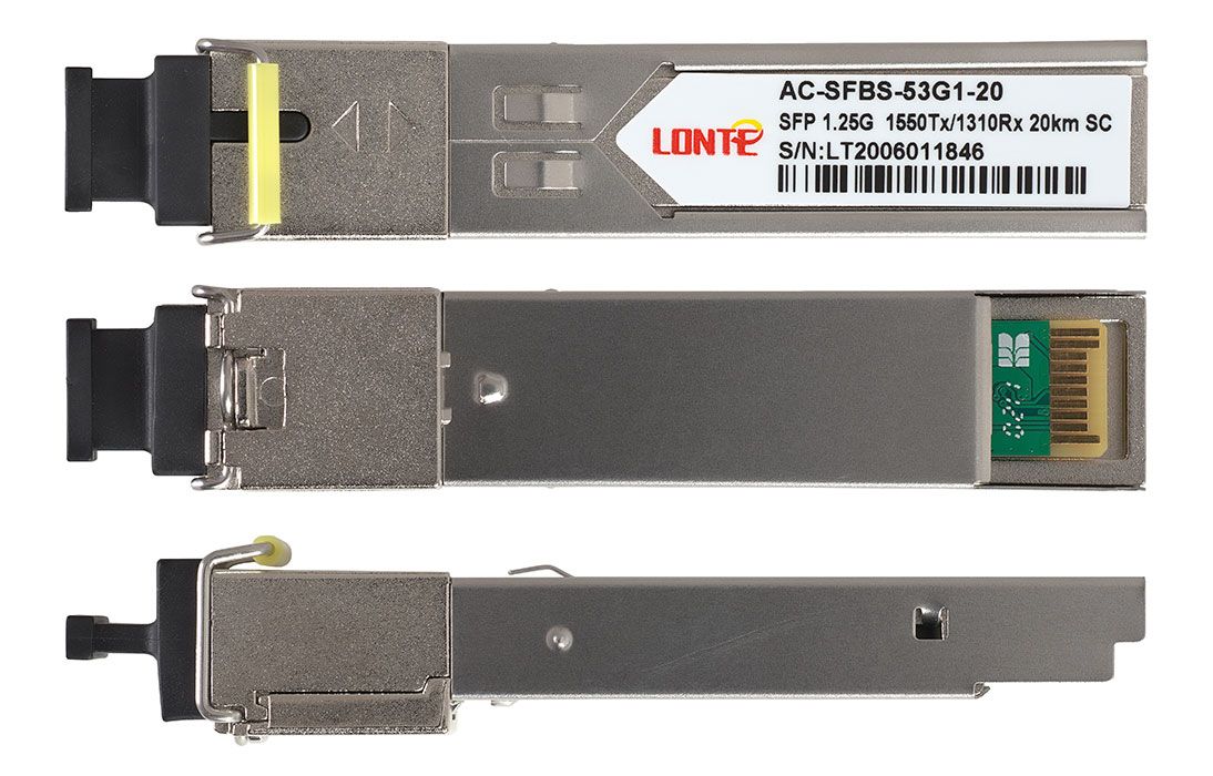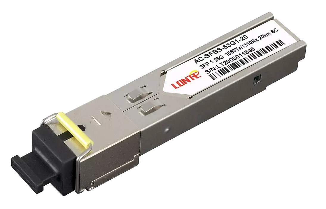 Одноволоконный оптический модуль с форм-фактором SFP для 1G Ethernet, соответствует стандарту 1000Base-BX. Предназначен для работы в одномодовом оптическом волокне (Single-mode fiber, SMF), максимальная дальность 20 км, SC коннектор, рабочая длина волны Tx/Rx: 1550/1310 нм.