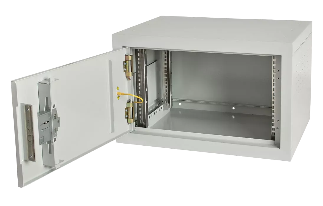 Дверь шкафа усилена двумя швеллерами и запирается надежным ригельным замком с трехточечной фиксацией. Угол открывания двери – 120˚, обеспечивает хороший доступ для монтажа и коммутации оборудования.