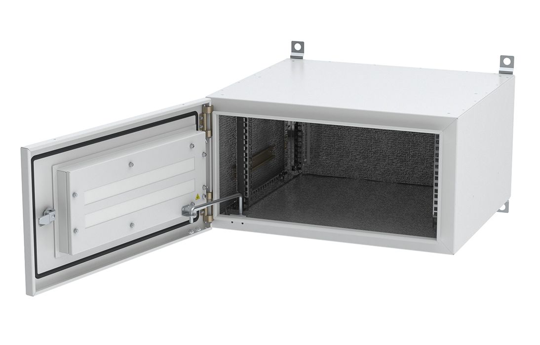 Дверь шкафа двухслойная вентилируемая, внутри установлен фильтр, также имеются места для установки вентиляторного модуля.