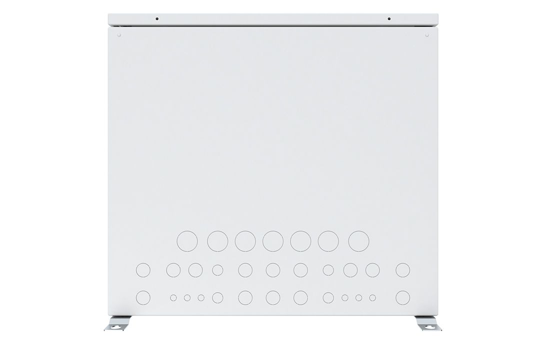 Кабельные вводы в шкафу выламываемые, расположены в днище. Внутри шкаф обклеен утеплителем.