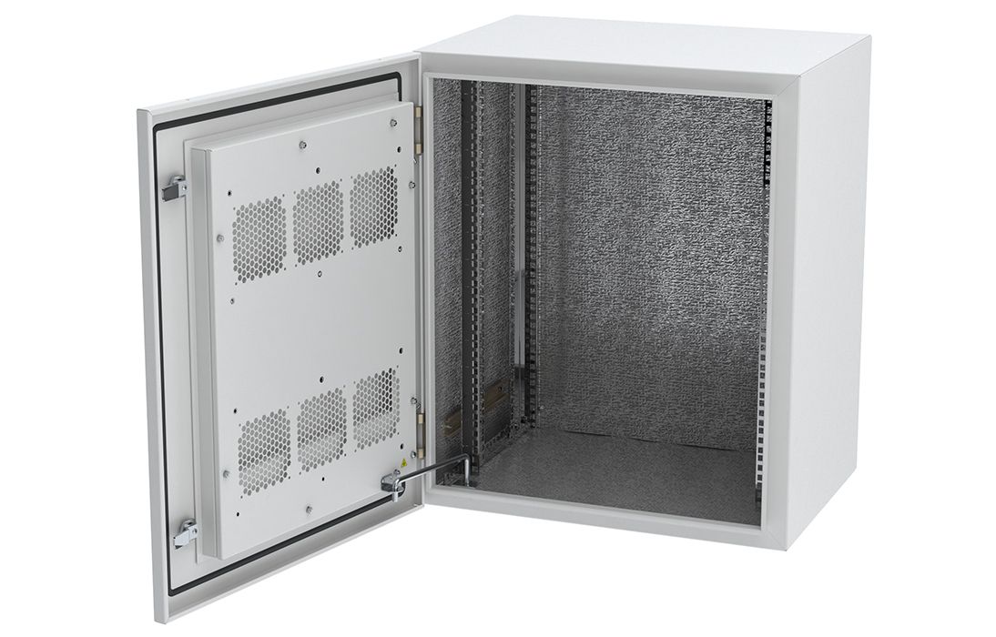 Дверь шкафа двухслойная вентилируемая, внутри установлен фильтр, также имеются места для установки вентиляторного модуля.