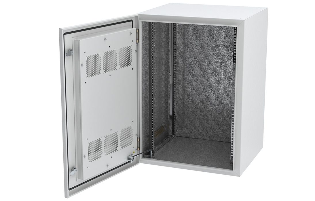 Дверь шкафа двухслойная вентилируемая, внутри установлен фильтр, также имеются места для установки вентиляторного модуля.