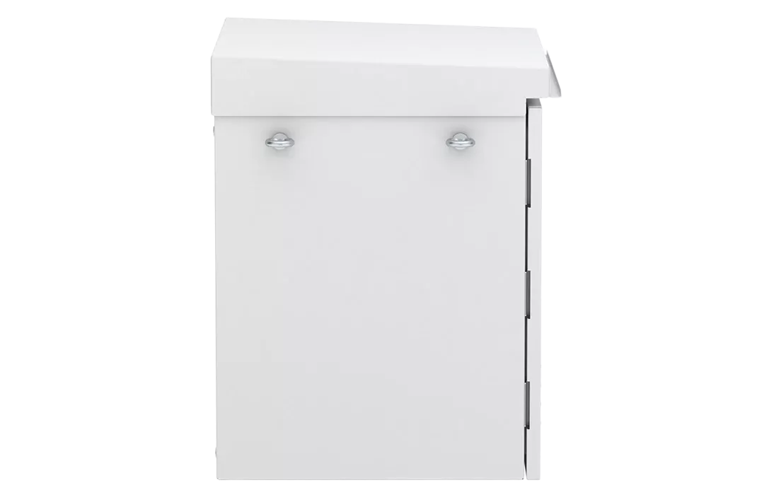 Отличительной особенностью от шкафов климатических телекоммуникационных навесных серии ШКТ-НВ является наличие крыши с козырьком.