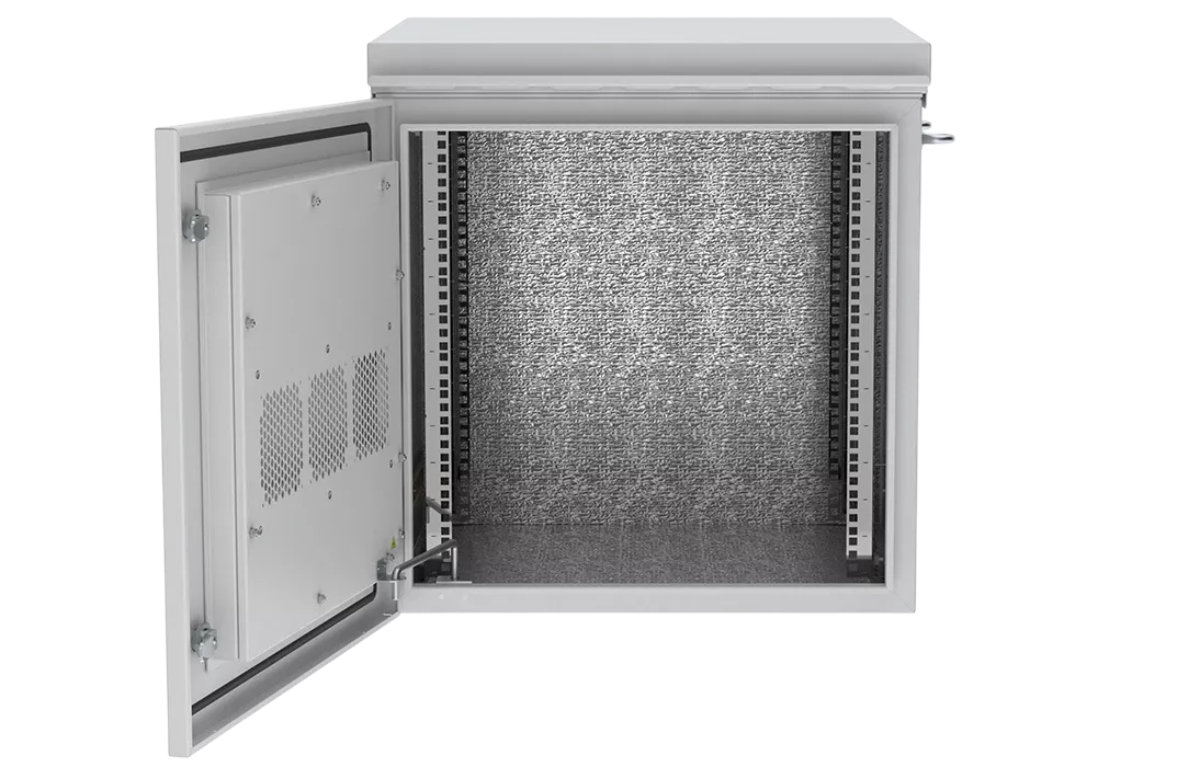 Дверь шкафа двухслойная вентилируемая, внутри установлен фильтр, также имеются места для установки вентиляторного модуля.