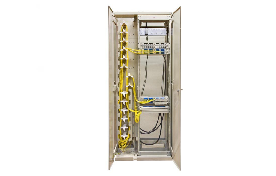 Решение ВОКС-Ф (волоконно-оптическая коммутационная система, фронтальный доступ к кроссовому полю) базируется на специализированном телекоммуникационном шкафе, состоящем из двух секций размерности 10'' и 19'' с полезной высотой 42U или 45U.