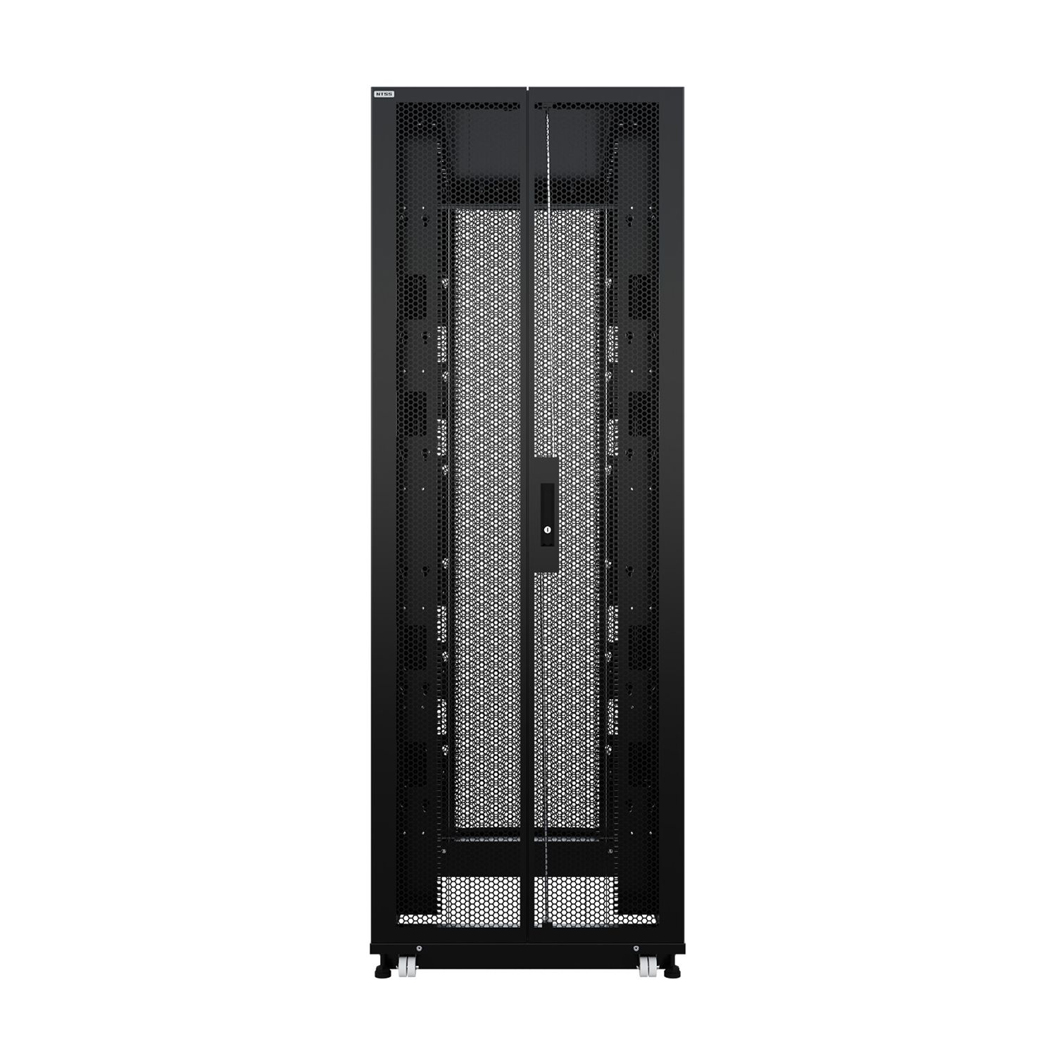 Шкаф напольный для ЦОД серверный NTSS ПРОЦОД PCM 48U 800х1200мм, 4 профиля 19, двойные боковые стенки, панель потолка с вводами, без панели пола, двери перфорированная и перфорированная двухстворчатая, регулируемые опоры, ролики, сварной каркас, черный RAL 9005