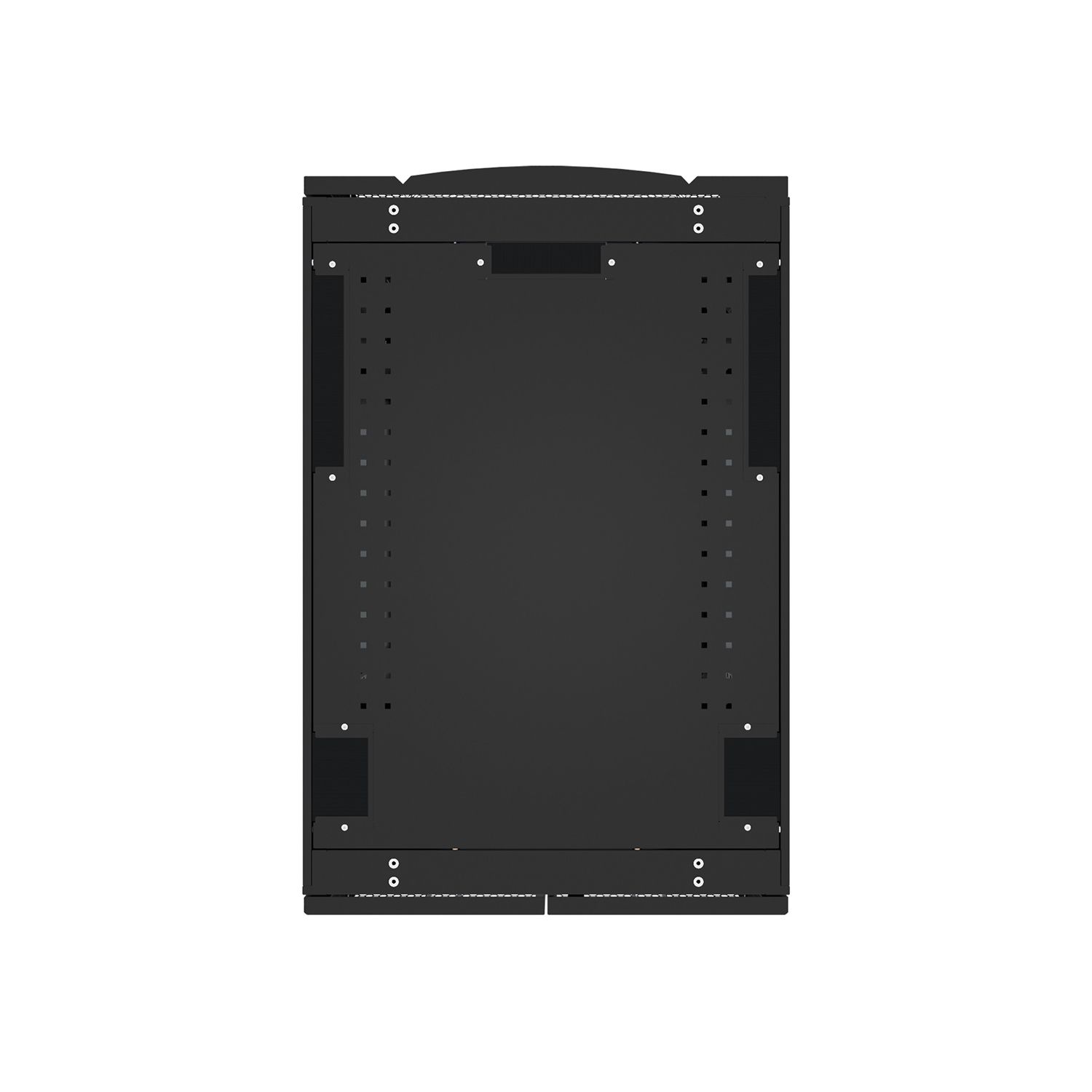 Угол открытия перфорированных передних и задних дверей 180°. Может эксплуатироваться без боковых панелей с полным сохранением функционала. По желанию шкафы могут устанавливаться без ножек и роликов для уменьшения высоты инсталляции без потери нагрузочной способности.