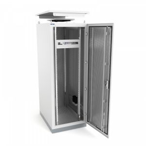 Климатические напольные шкафы серии «RT» с двумя дверьми устанавливаются на цоколь и предназначены для установки активного и пассивного телекоммуникационного оборудования на открытом воздухе, для защиты оборудования от осадков и сезонного колебания температур от -50 ºС до +50 ºС. Необходимая температура внутри шкафа поддерживается потолочным блоком вентиляторов и обогревателем, которые подключены к термостату. Конструкция шкафа является неразборной и может сразу быть введена в эксплуатацию. Ригельные замки на дверях. Покрытие порошково-полимерная краска.