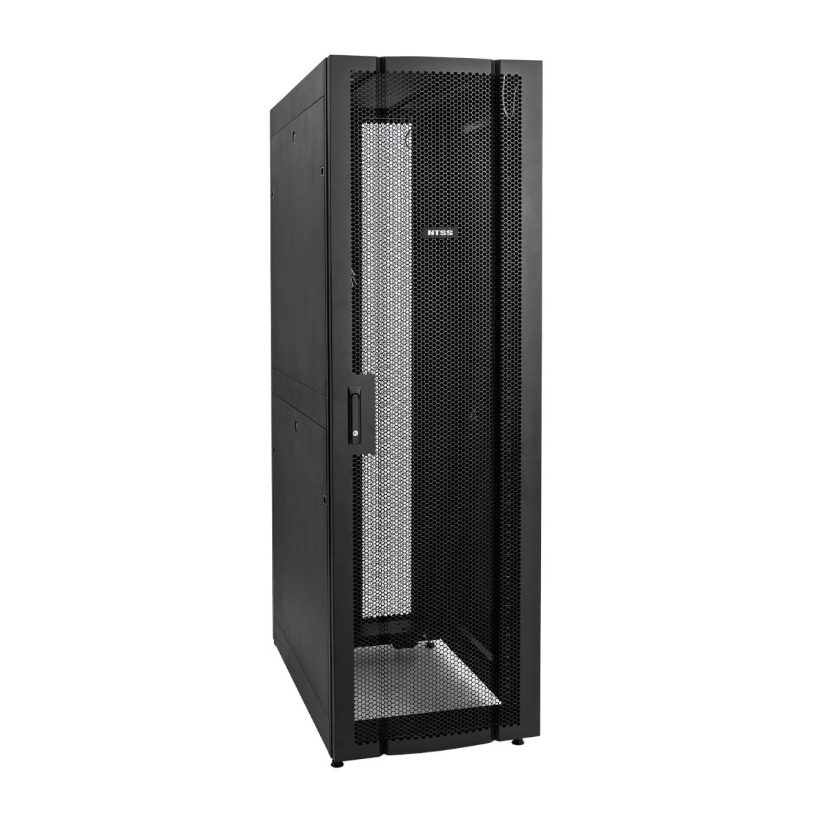 Шкаф напольный серверный NTSS ПРОЦОД DS 48U 750х1070мм, двойные боковые стенки, панель потолка с щеточными вводами, двери перфорированная и перфорированная двухстворчатая, без панели пола, регулируемые опоры, ролики, черный RAL 9005