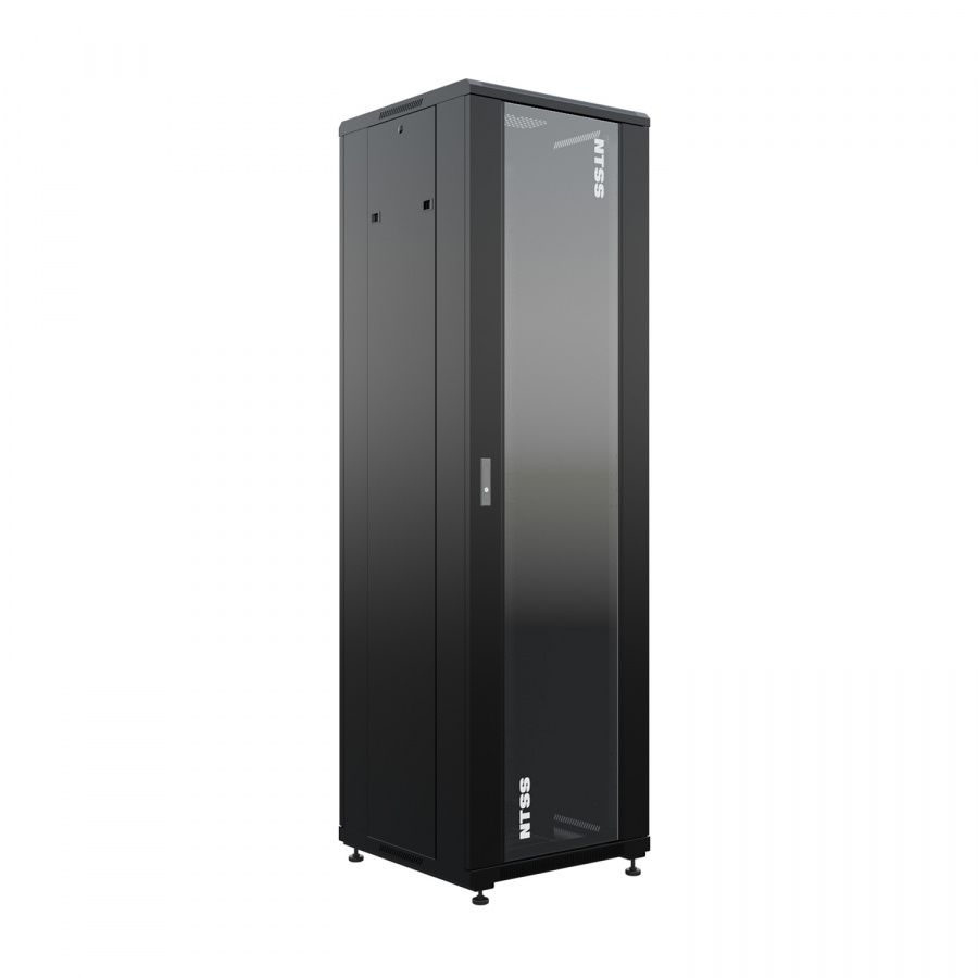 Шкаф напольный универсальный серверный NTSS R 18U 600х600мм, 4 профиля 19, двери стекло и сплошная металл, боковые стенки съемные, регулируемые опоры, разобранный, черный RAL 9005