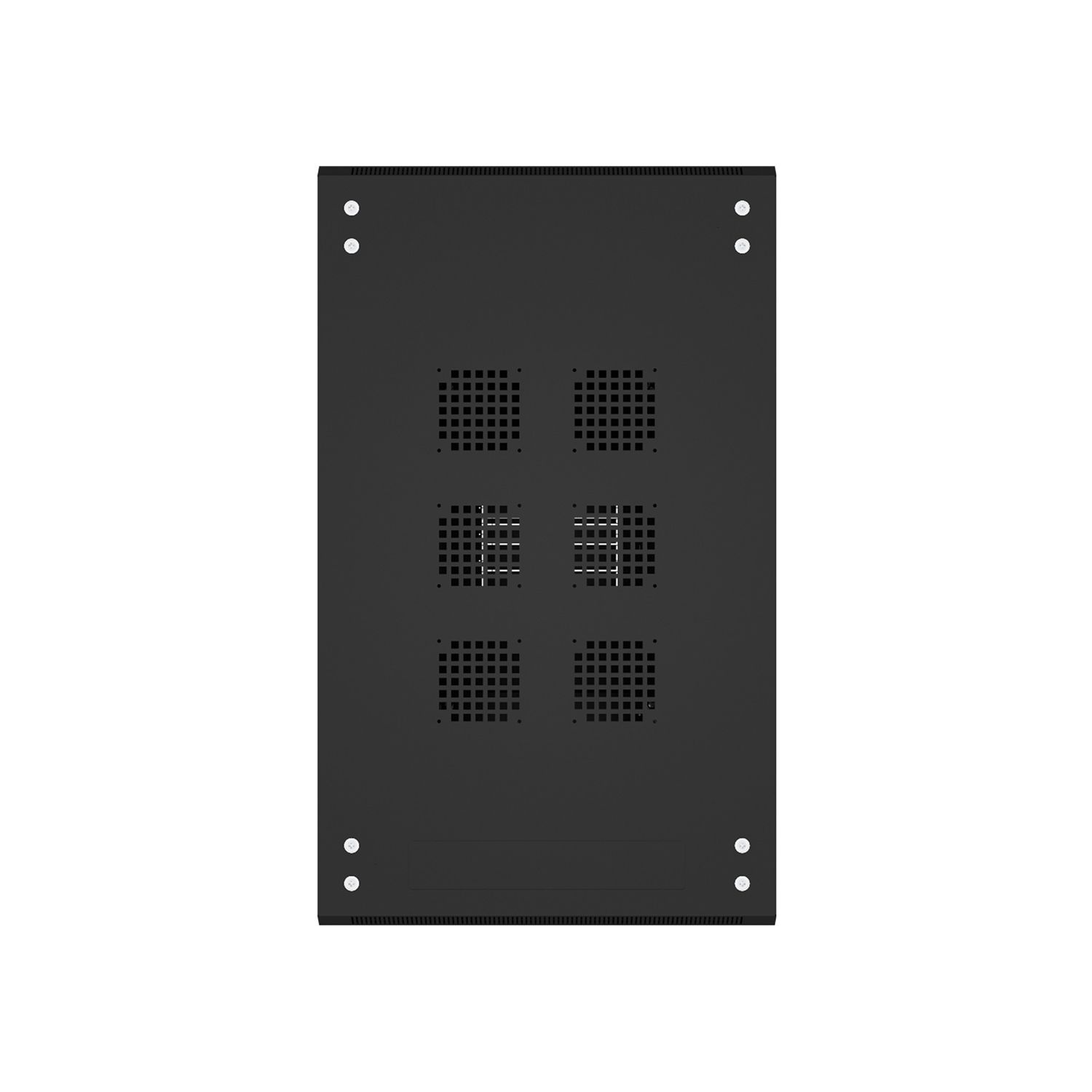 Передняя дверь со стеклом и задняя глухая металлическая ограничивает наполнение шкафа оборудованием с малым тепловыделением до нескольких киловатт.