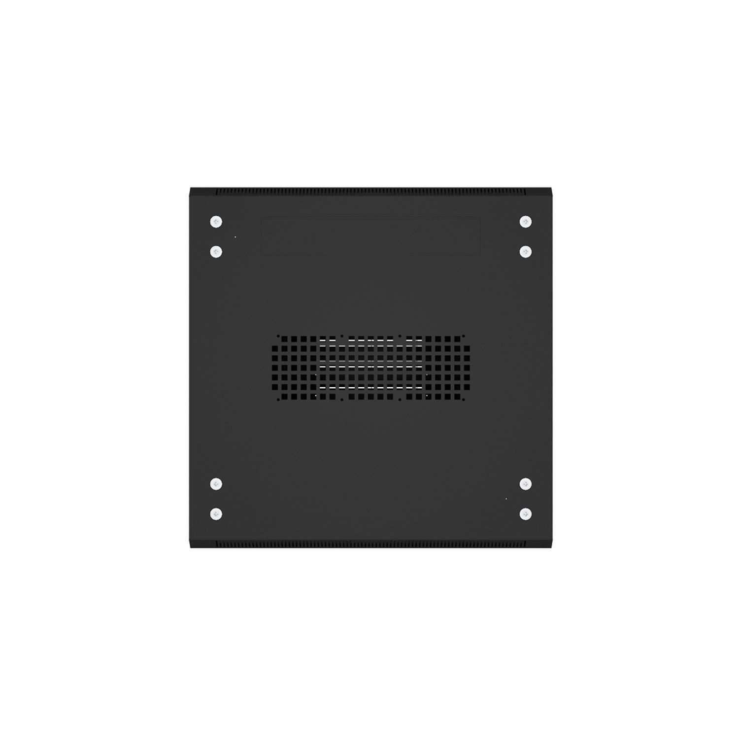 Передняя дверь со стеклом и задняя глухая металлическая ограничивает наполнение шкафа оборудованием с малым тепловыделением до нескольких киловатт.