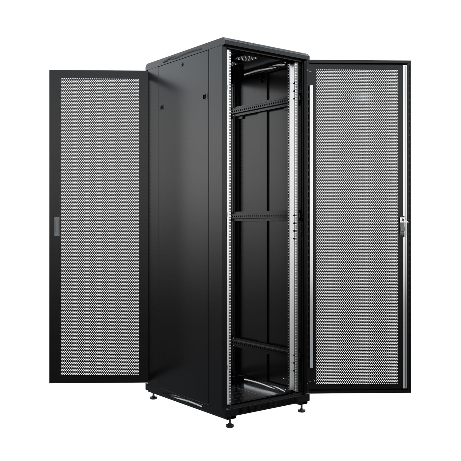 Шкаф напольный универсальный серверный NTSS R 32U 600х800мм, 4 профиля 19, двери перфорированная и перфорированная, боковые стенки съемные, регулируемые опоры, разобранный, черный RAL 9005