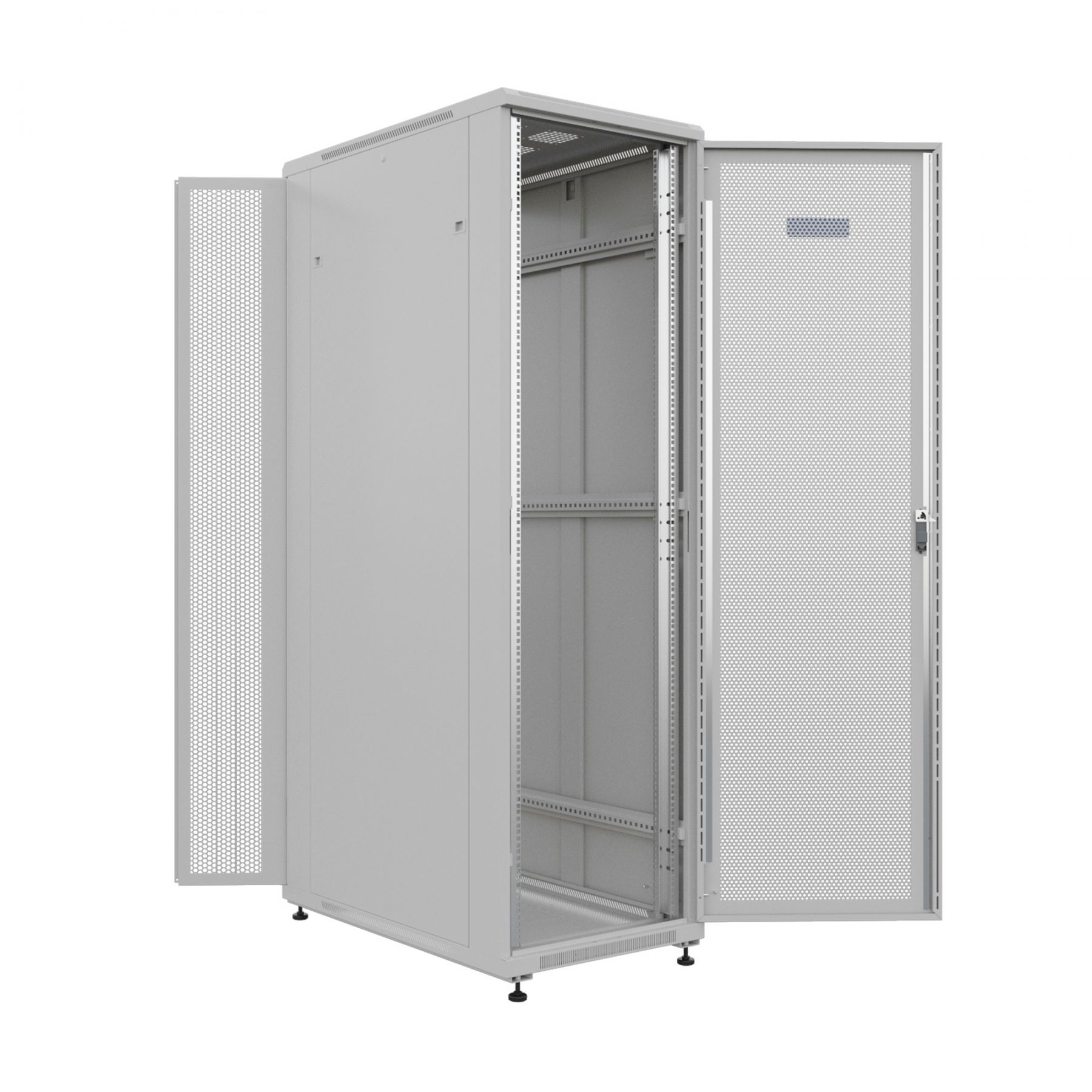 Шкаф напольный универсальный серверный NTSS R 42U 800х1000мм, 4 профиля 19, двери перфорированная и перфорированная двухстворчатая, боковые стенки съемные, регулируемые опоры, разобранный, серый RAL 7035