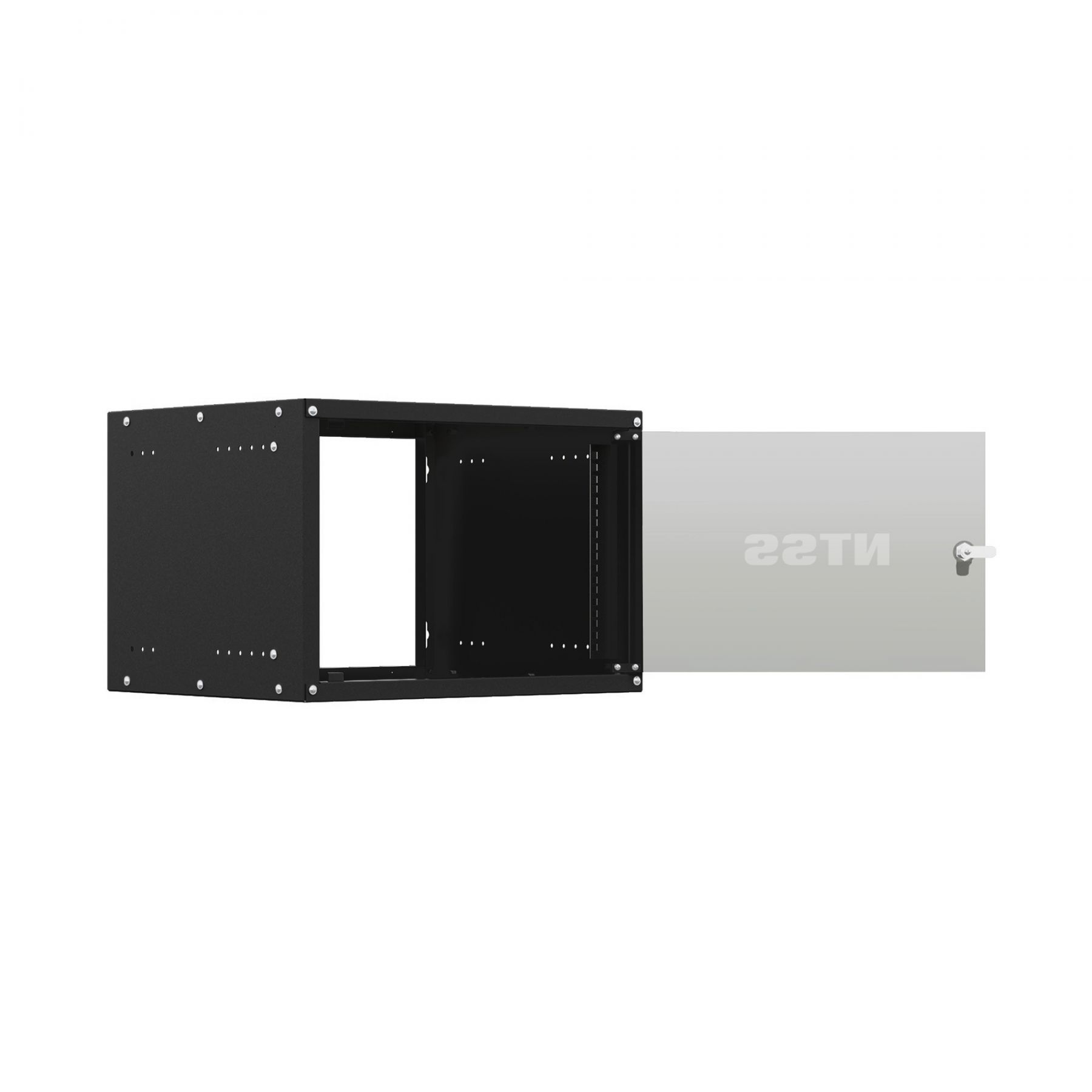 Шкаф настенный телекоммуникационный NTSS LIME 6U 550х450х370мм, 2 профиля 19, дверь стеклянная, боковые стенки несъемные, разобранный, черный RAL 9005
