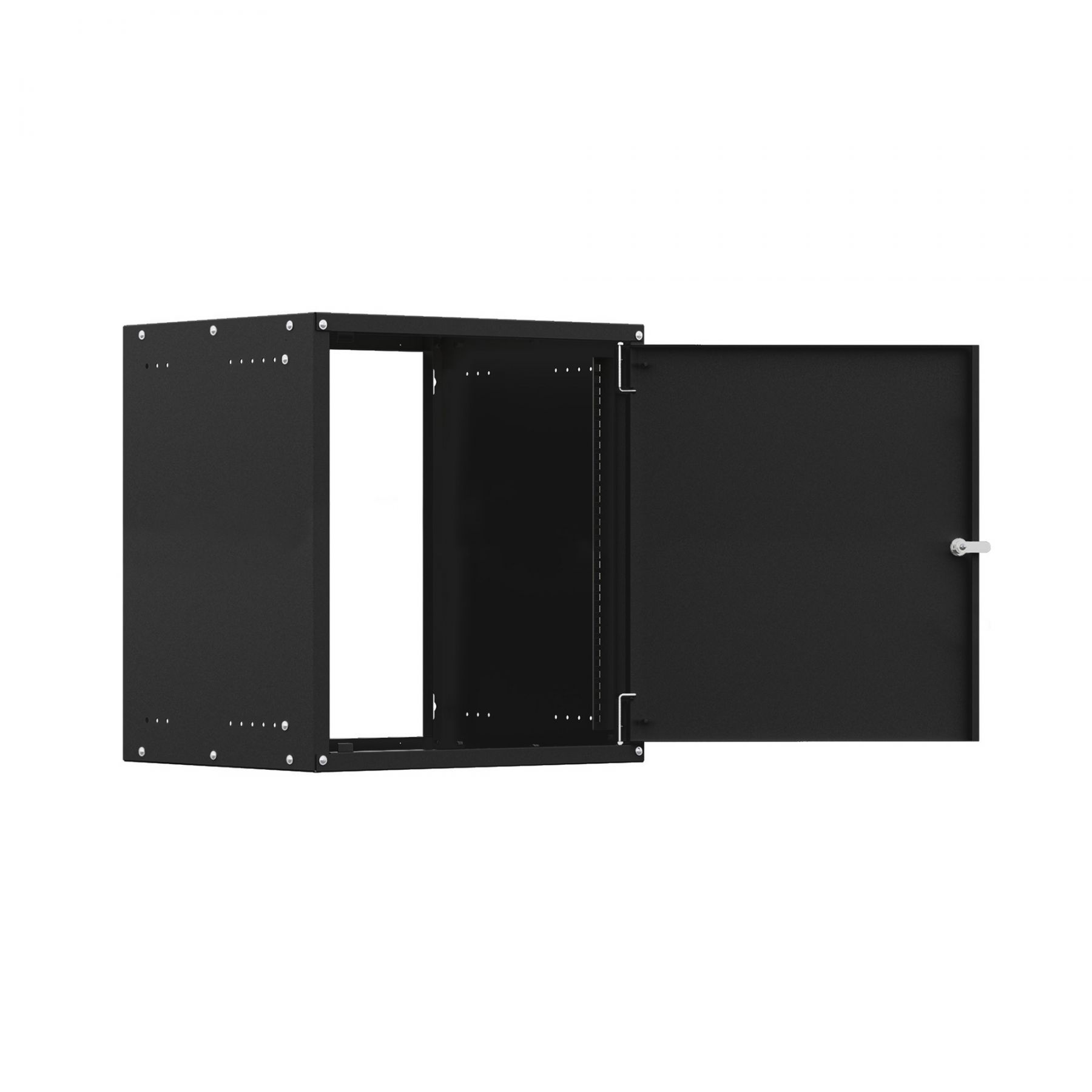 Наличие стальной глухой двери добавляет дополнительную механическую защиту и ограничивает осмотр содержимого шкафа.