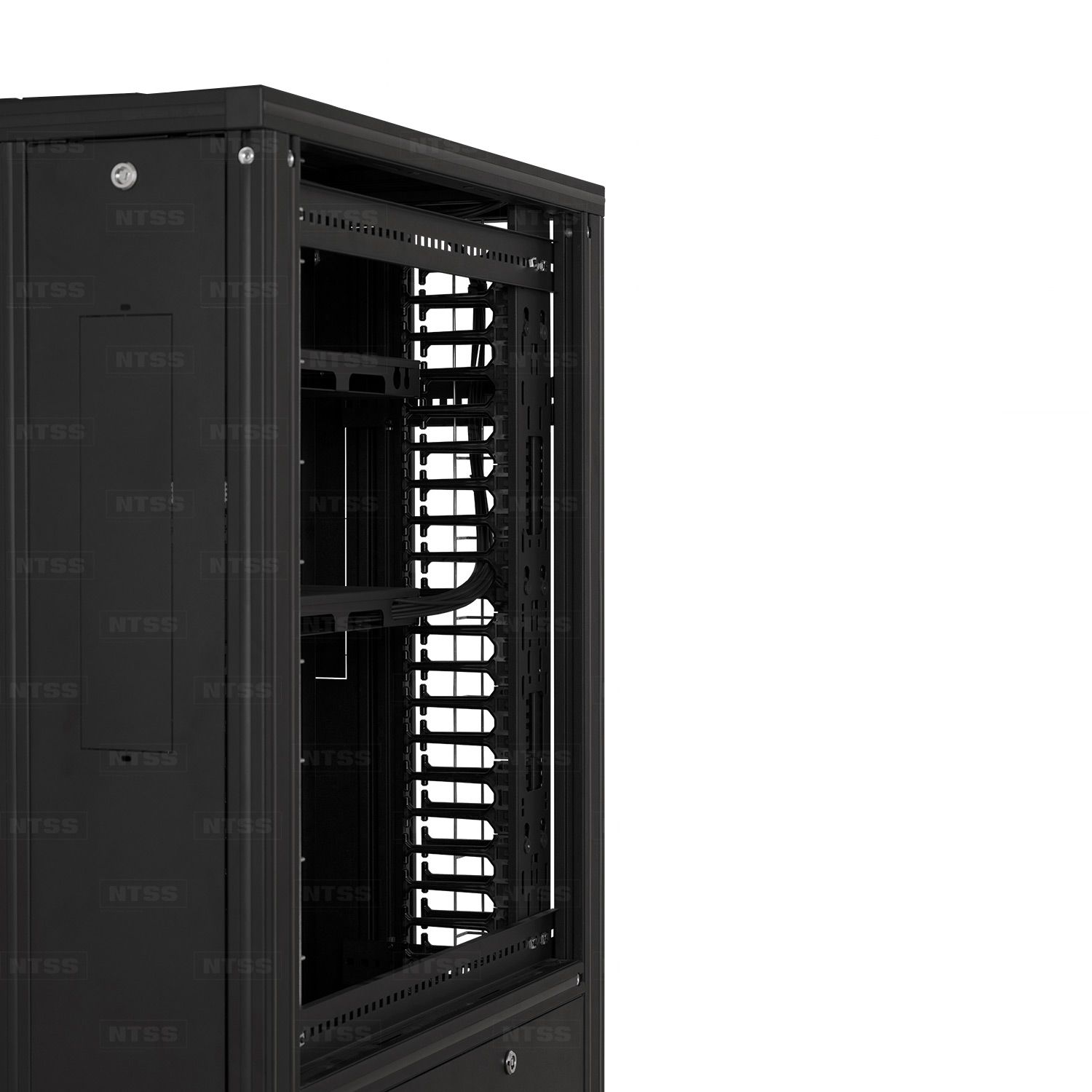 Шкаф оптический кроссовый NTSS ODF PROF 42U 900х500мм, модульные стенки, панели потолка и пола, двойные распашные глухие двери, черный RAL 9005