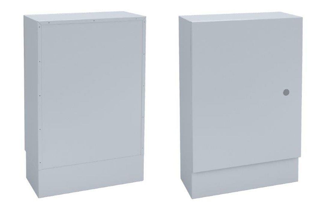 Шкаф состоит из корпуса и тумбы высотой 500 мм со съемной дверью. В тумбе предусмотрено крепление запаса кабеля, разветвительных и газонепроницаемых муфт.