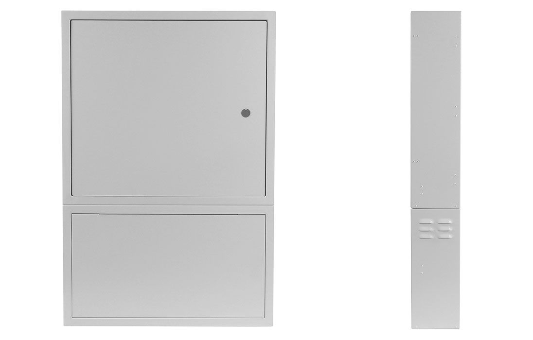 Шкаф состоит из корпуса и тумбы высотой 500 мм со съемной дверью. В тумбе предусмотрено крепление запаса кабеля, разветвительных и газонепроницаемых муфт.