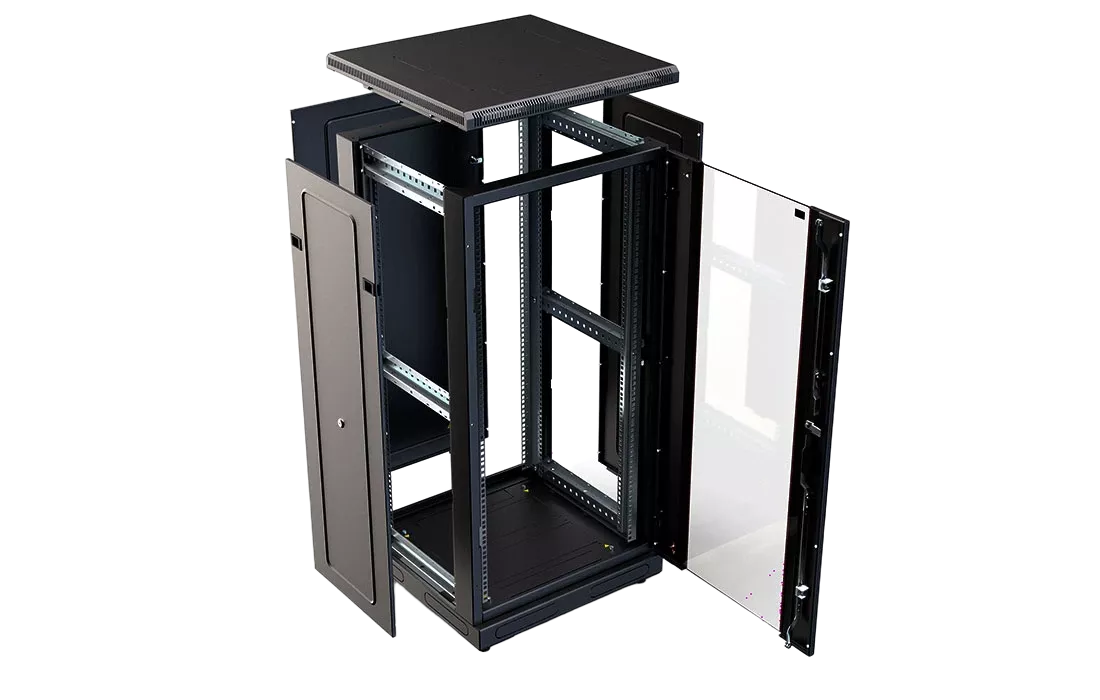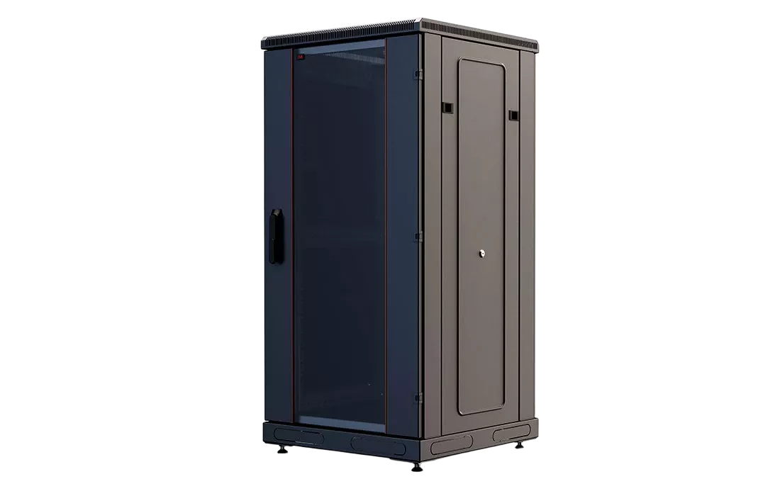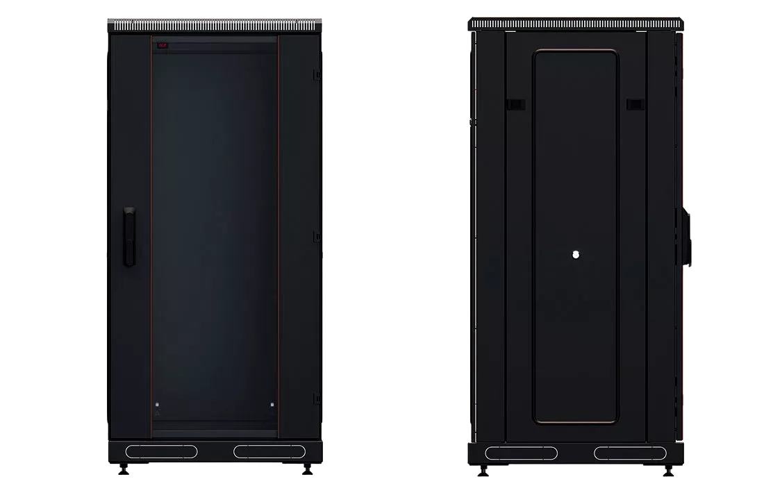 За счет элементов крепления каркас шкафа имеет повышенную жесткость. Распределенная вертикальная нагрузка до 800 кг. Стандартно шкаф комплектуется: передней дверью, боковыми и задней стенками с замками.