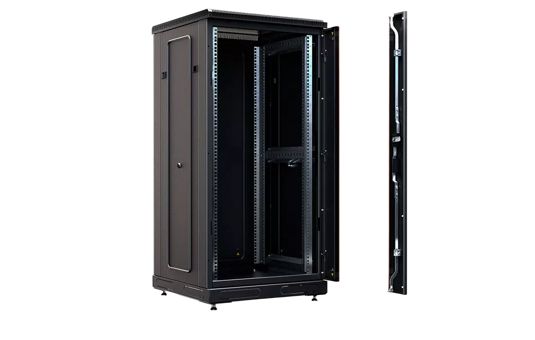 Шкаф телекоммуникационный напольный 19", 24U(600x1000), ШТ-НП-М-24U-600-1000-С-Ч, передняя дверь стекло, черный ССД