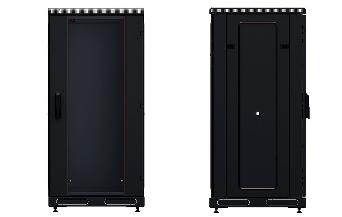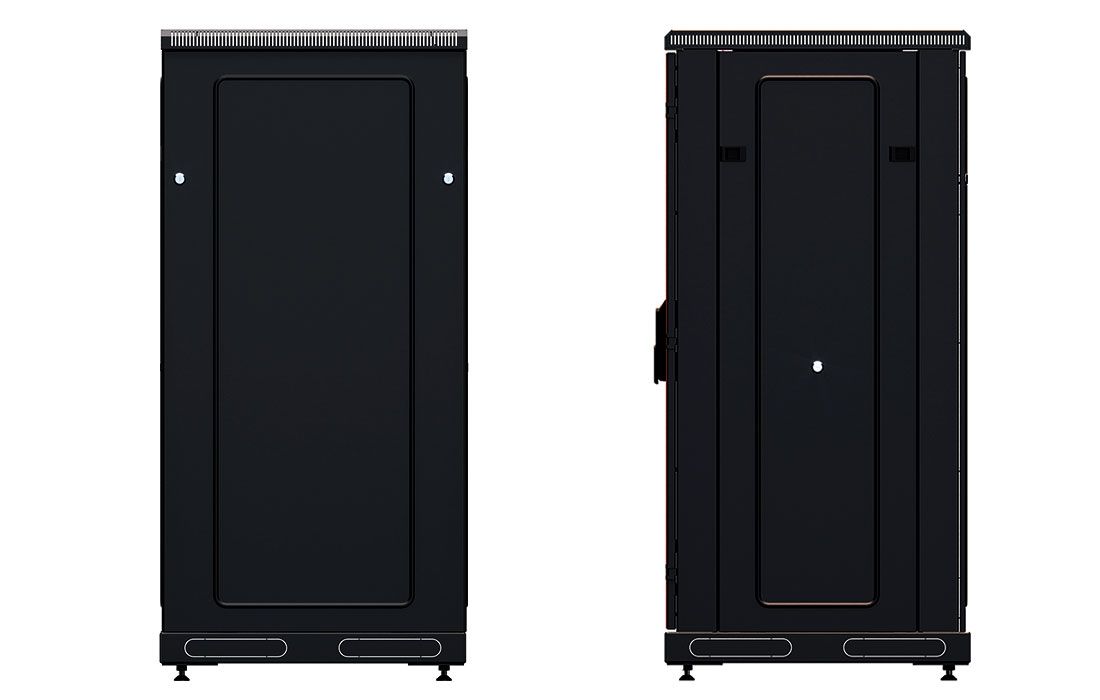 За счет элементов крепления каркас шкафа имеет повышенную жесткость. Распределенная вертикальная нагрузка до 800 кг. Стандартно шкаф комплектуется: передней дверью, боковыми и задней стенками с замками.