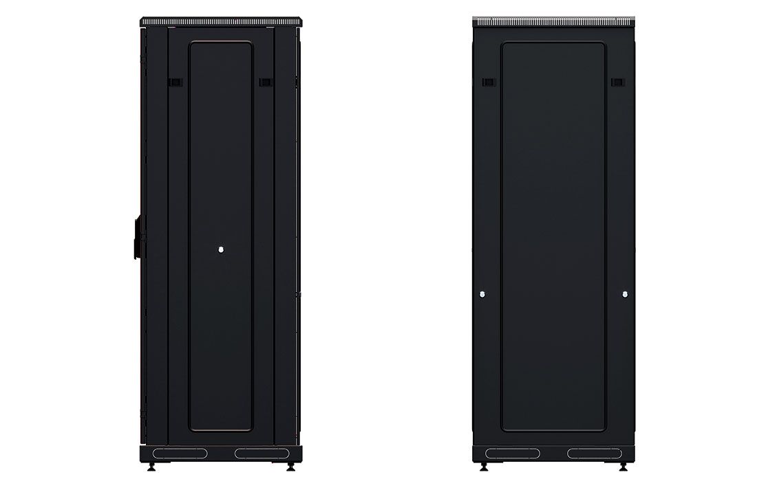За счет элементов крепления каркас шкафа имеет повышенную жесткость. Распределенная вертикальная нагрузка до 800 кг. Стандартно шкаф комплектуется: передней дверью, боковыми и задней стенками с замками.