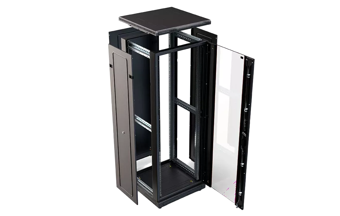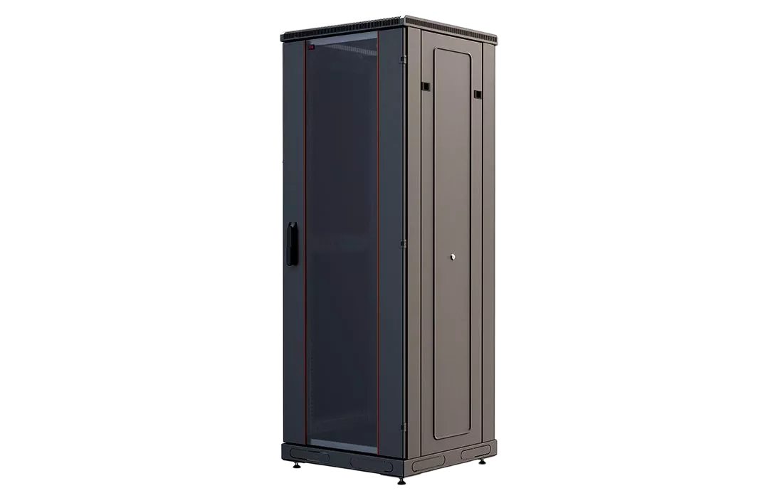 За счет элементов крепления каркас шкафа имеет повышенную жесткость. Распределенная вертикальная нагрузка до 800 кг. Стандартно шкаф комплектуется: передней дверью, боковыми и задней стенками с замками.