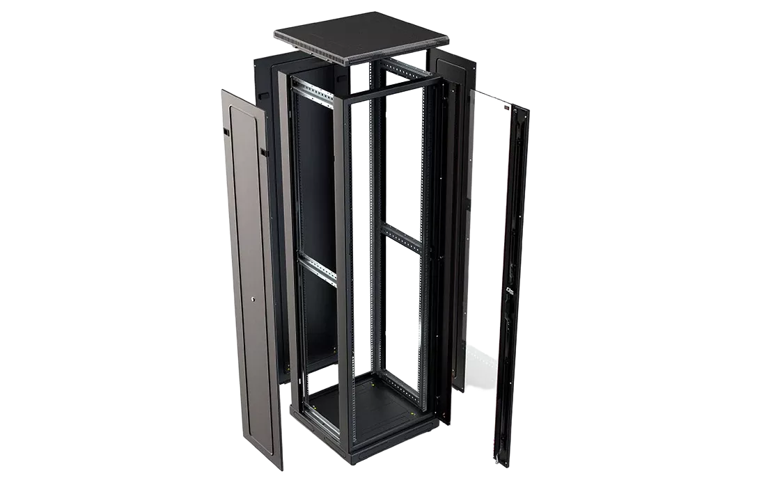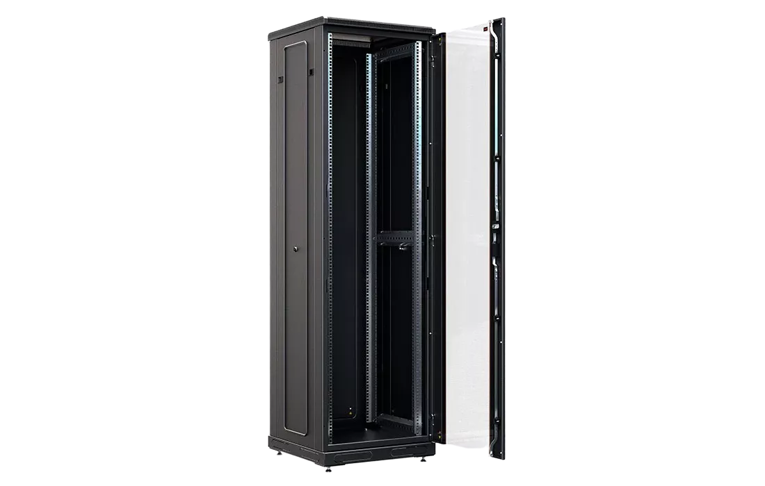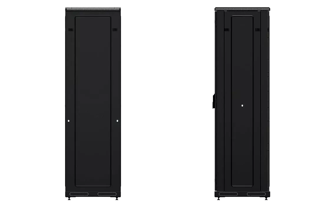 За счет элементов крепления каркас шкафа имеет повышенную жесткость. Распределенная вертикальная нагрузка до 800 кг. Стандартно шкаф комплектуется: передней дверью, боковыми и задней стенками с замками.