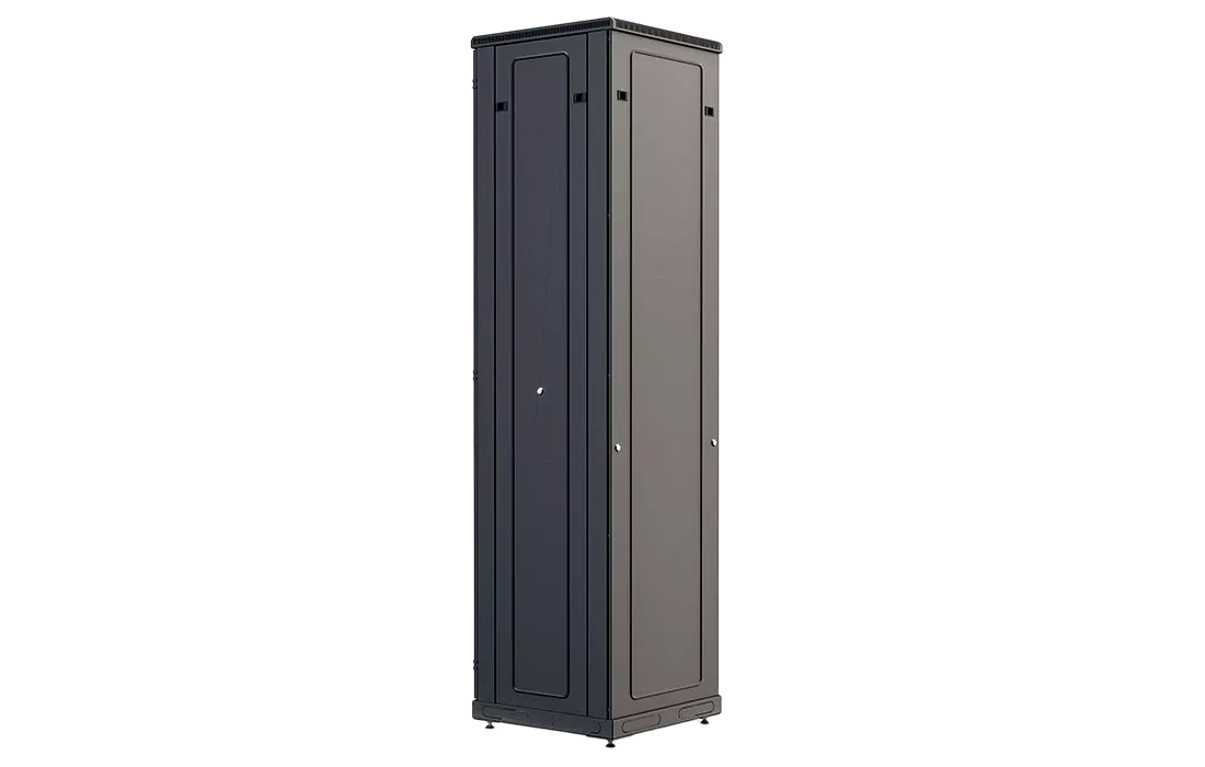 За счет элементов крепления каркас шкафа имеет повышенную жесткость. Распределенная вертикальная нагрузка до 800 кг. Стандартно шкаф комплектуется: передней дверью, боковыми и задней стенками с замками.